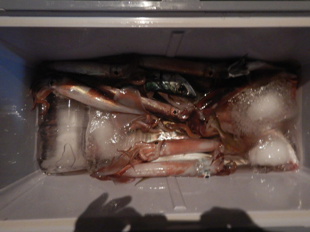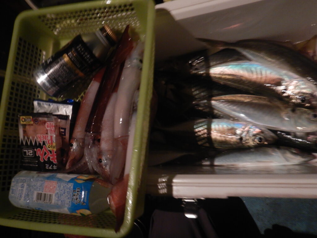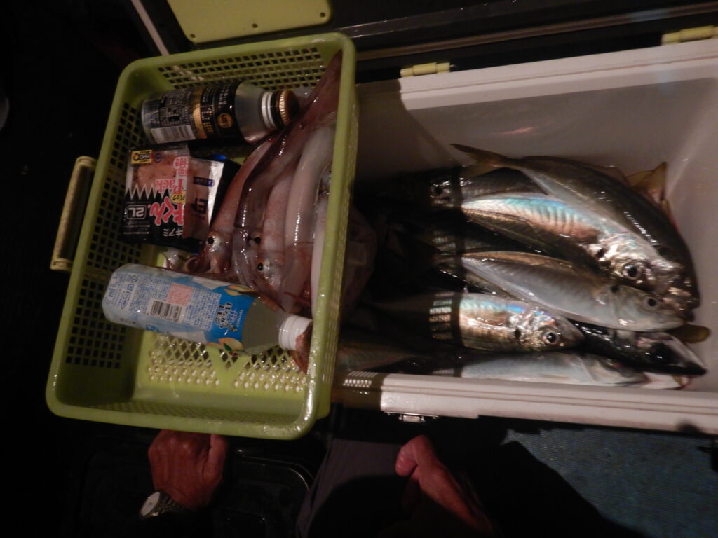 アジ(25㎝~40㎝)100尾程 サバ(25㎝~45㎝)80尾程 花鯛・真鯛45枚程 マイカ50杯程