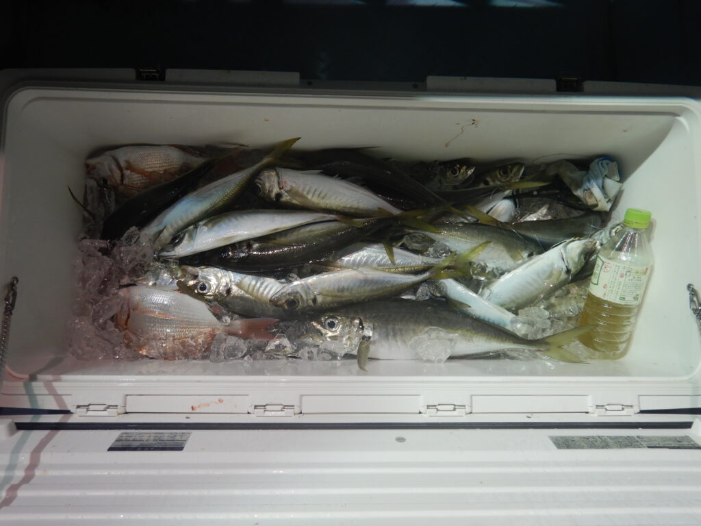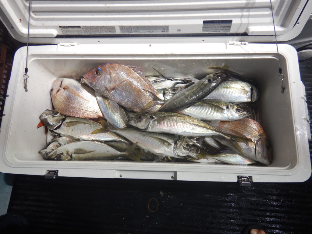 投稿日: 2025年8月11日2025年8月11日 投稿者: 船長8月9日(土) ナイター便オオアジ釣り アジ(25㎝前後~40㎝)250尾程 サバ50尾程 花鯛・真鯛(25㎝~40㎝)30枚程 チダイ(ハナダイ)38㎝