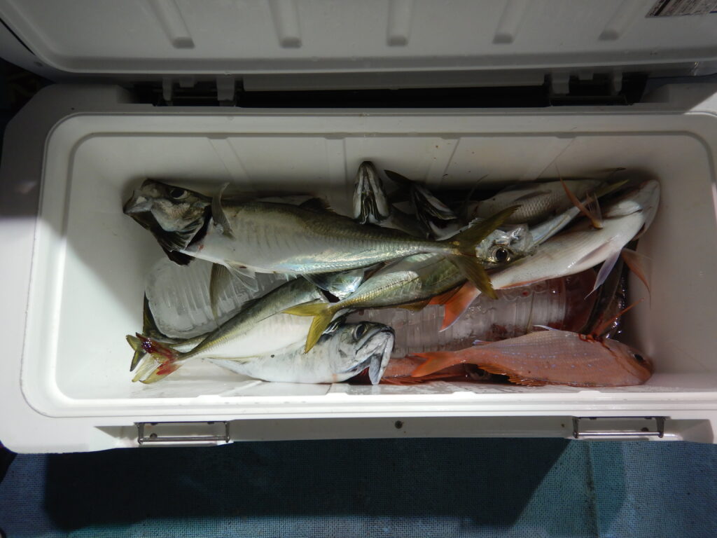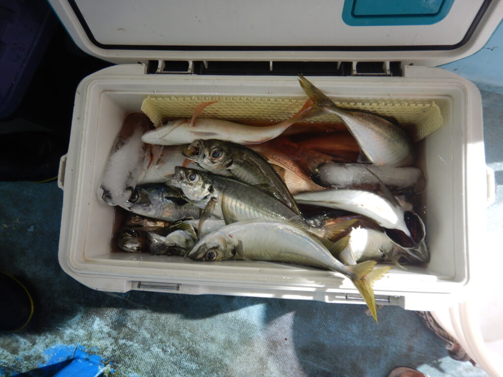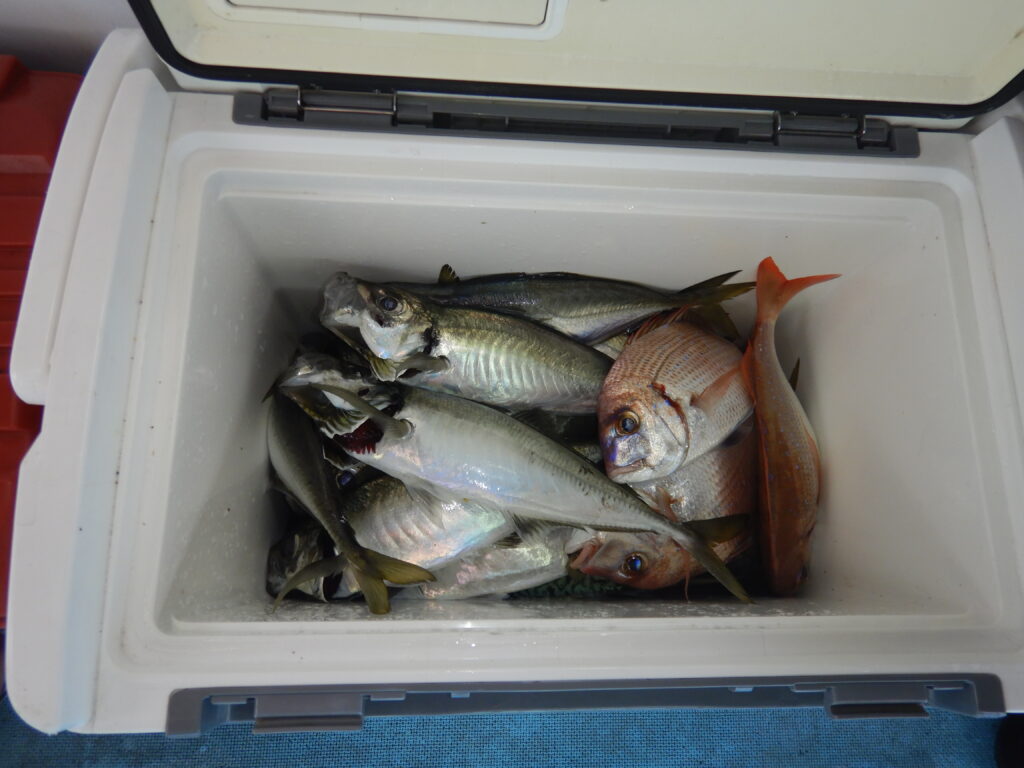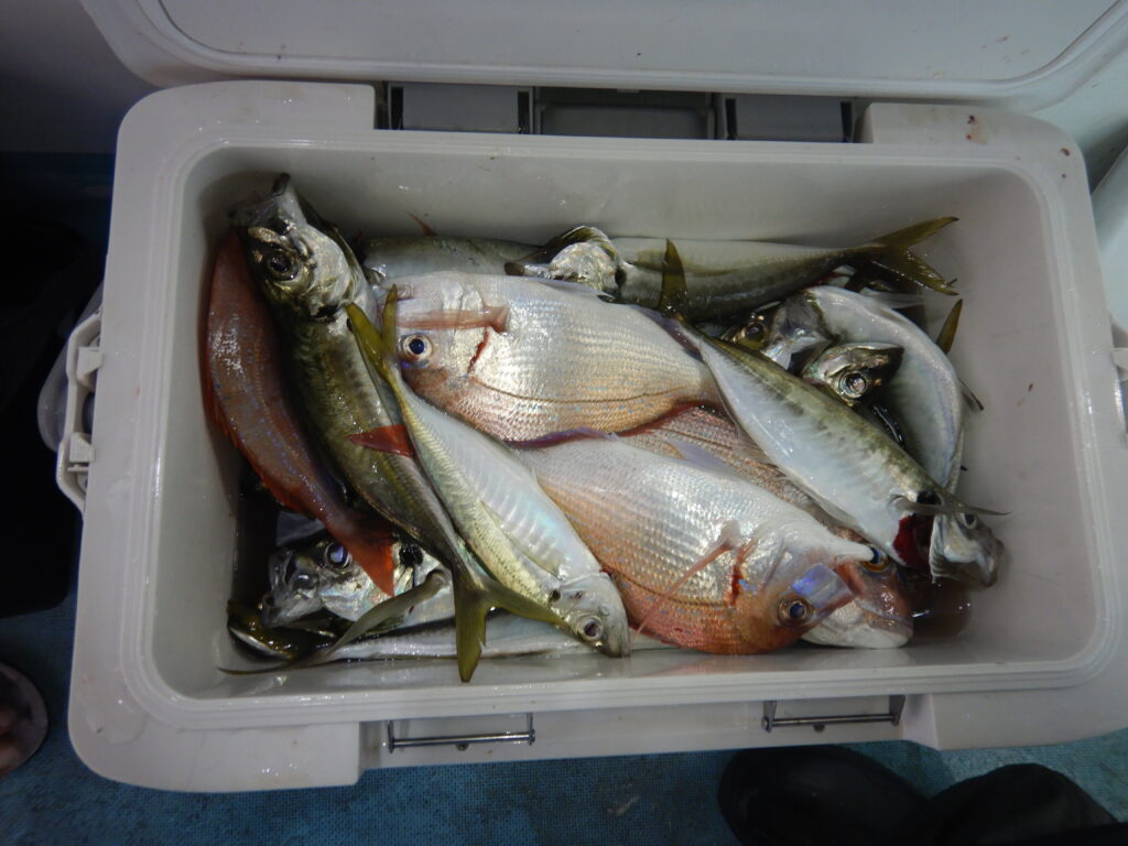 アジ(20㎝~40㎝前後)200尾程 サバ40尾程 花鯛・真鯛50枚程