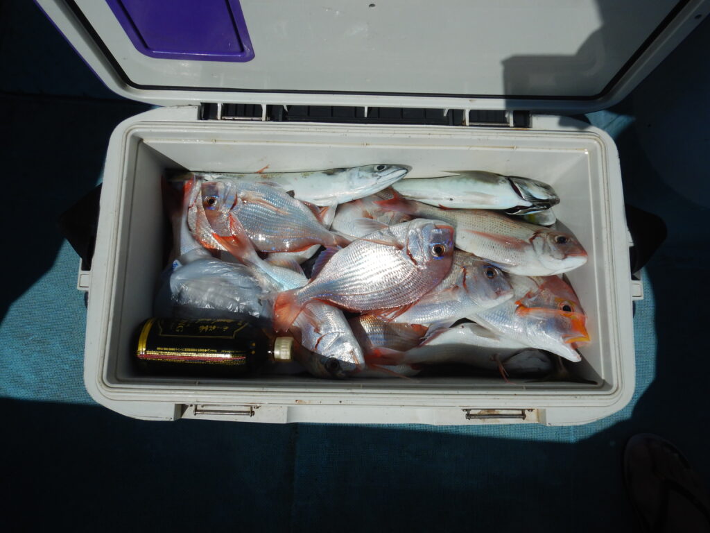 投稿日: 2025年9月15日2025年9月15日 投稿者: 船長9月15日(月) 午前便サビキ釣り 甘鯛2尾 真鯛・花鯛97枚 カサゴ2尾 ツバイソ9尾 アジ37尾 サバ12尾 カワハギ1枚 カイワリ1枚 マゴチ2尾 平鯵1枚 平鯵36㎝ 甘鯛45㎝ まだまだ暑いですが魚は釣れてますよ 釣人達のご連絡お待ちしておりますm(__)m