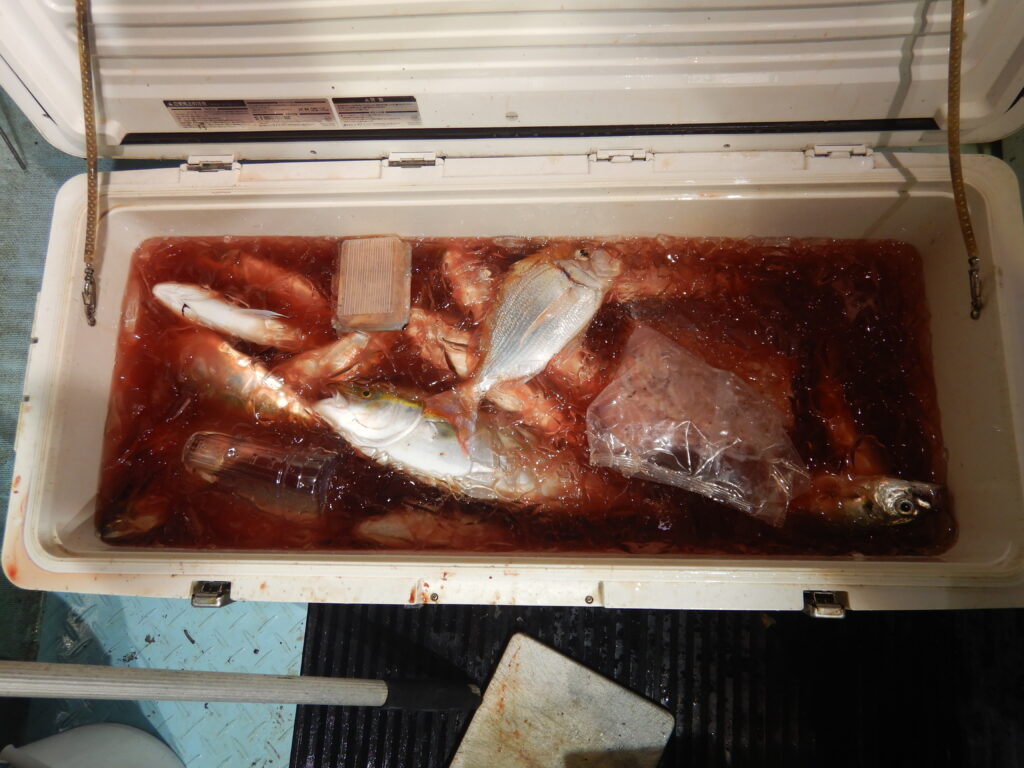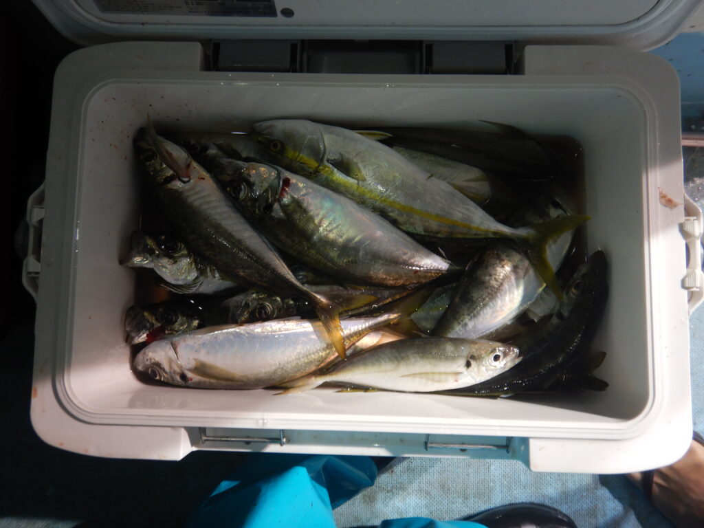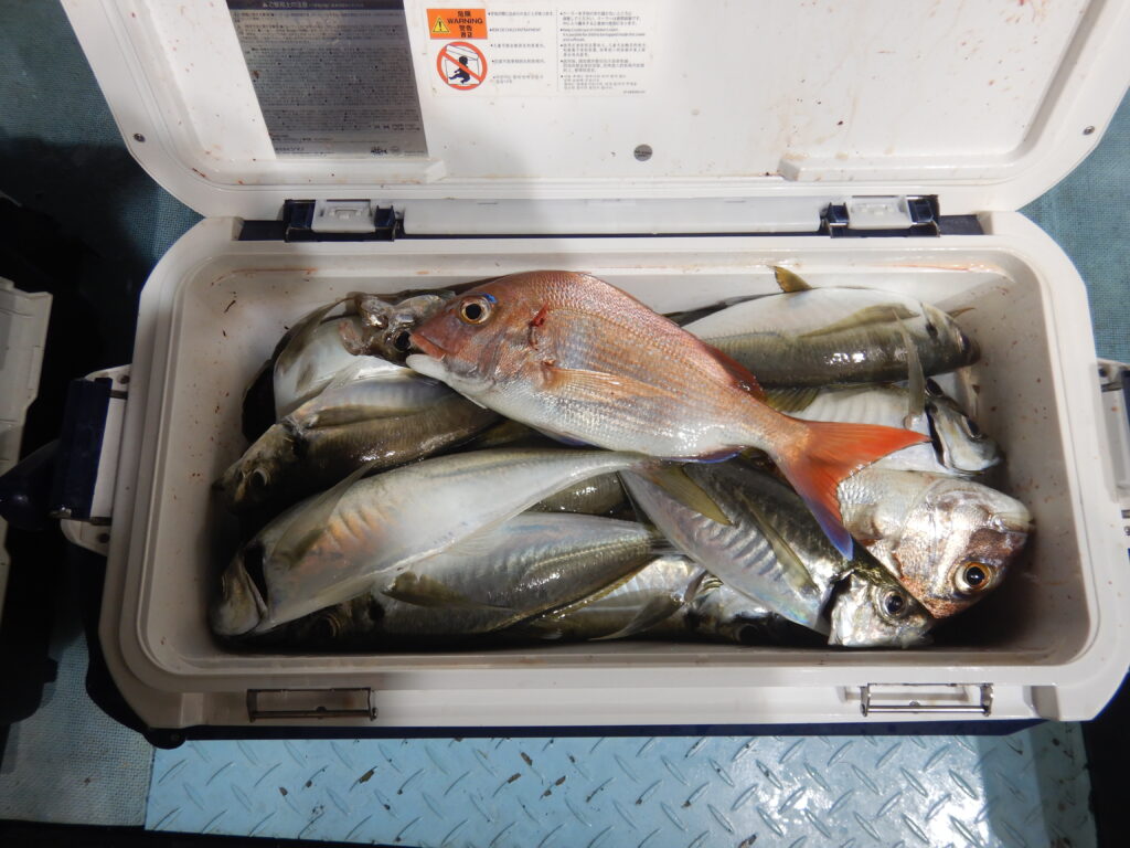 投稿日: 2025年9月30日2025年9月30日 投稿者: 船長9月27日(土) ナイター便大アジ釣り アジ(25㎝~35㎝)170尾程 花鯛・真鯛(30㎝オーバーが5尾)10数枚程 フクラギ(ツバイソ)40尾程 スルメイカ1杯 サバ数尾程 チダイ45㎝ 本日もアジ大漁でしたイカも釣れるかも! 釣人達のご連絡お待ちしておりますm(__)m