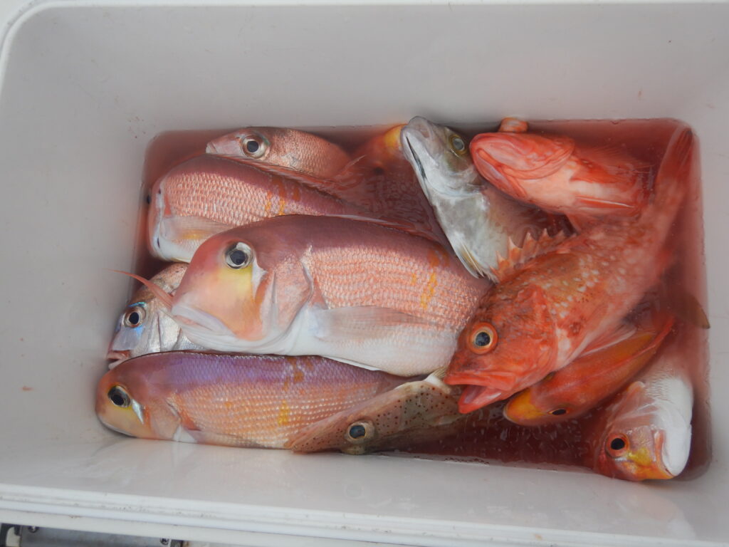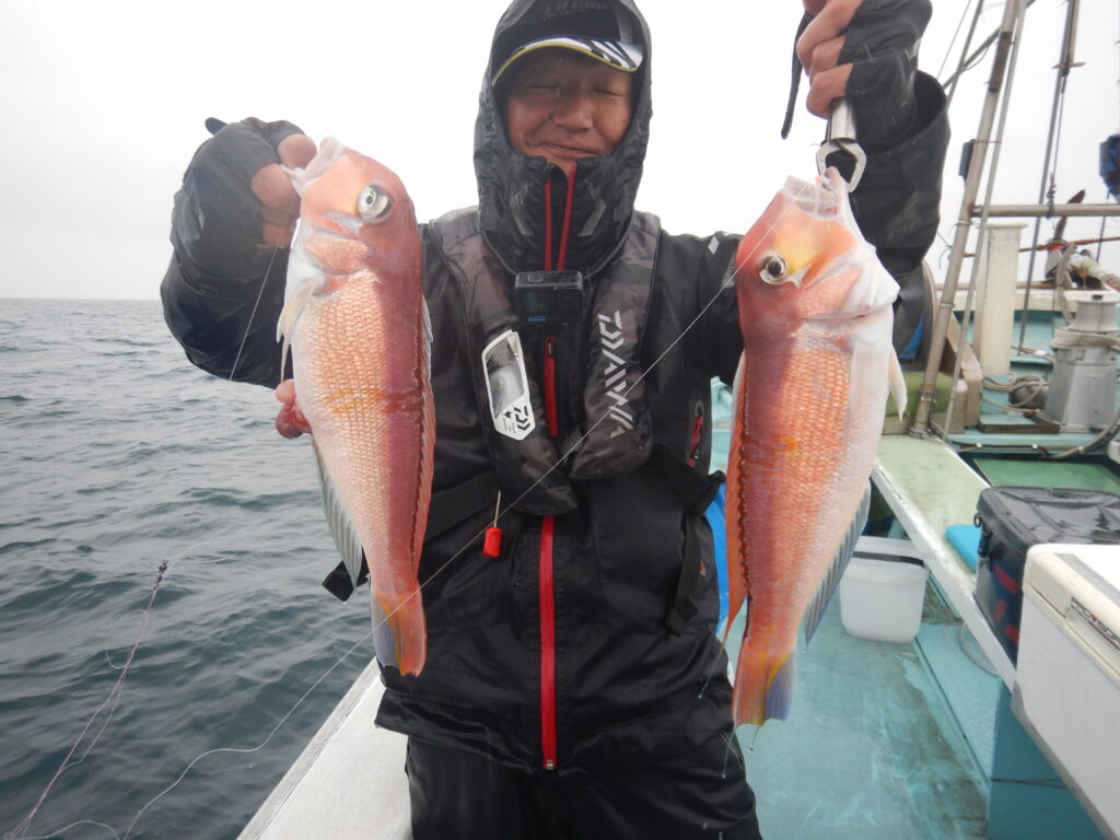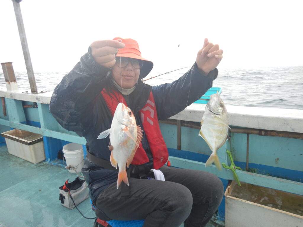 投稿日: 2025年10月13日 投稿者: 船長10月8日(水) 午前便サビキ釣り 甘鯛(40㎝4尾、43㎝2尾)6尾 花鯛・真鯛(25㎝~40㎝)40枚 アジ5尾 イナダ5尾 カサゴ5尾 カイワリ10枚 マゴチ2尾 ウマズラ1枚 甘鯛釣れてますよ