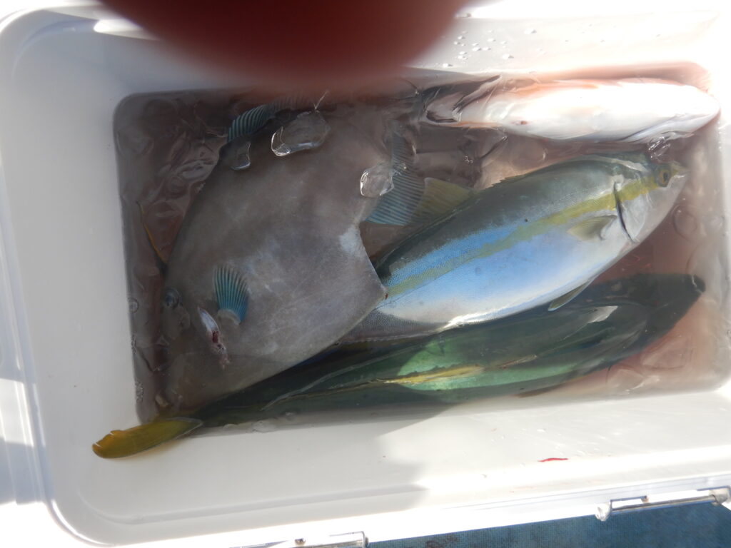 甘鯛(40㎝前後)2尾 真鯛・花鯛10枚 イナダ1尾 ウマズラ1枚 マゴチ1尾 チカメキントキ1枚