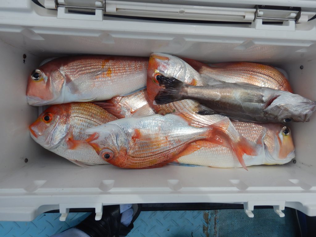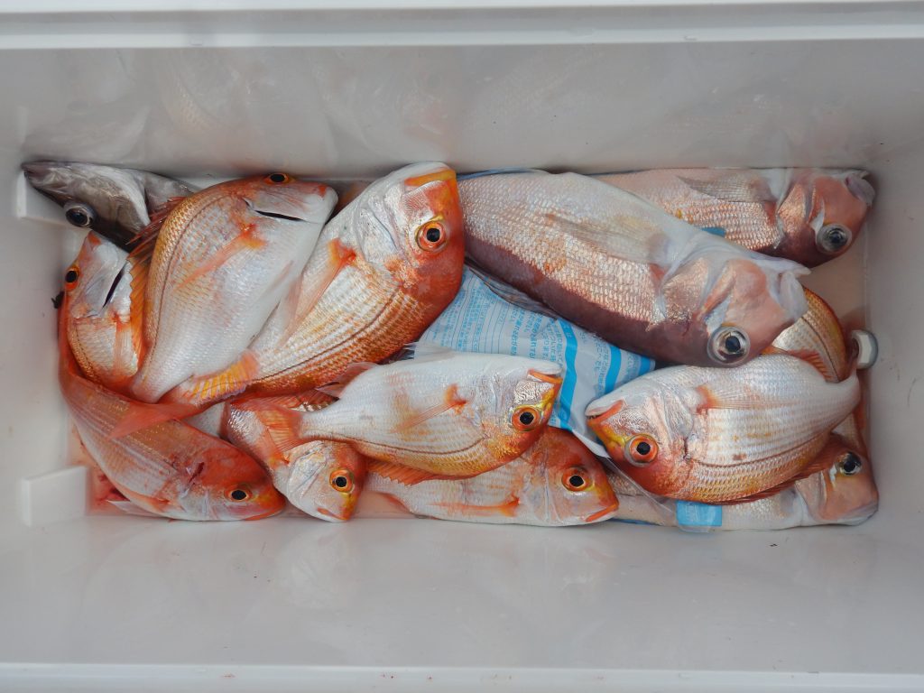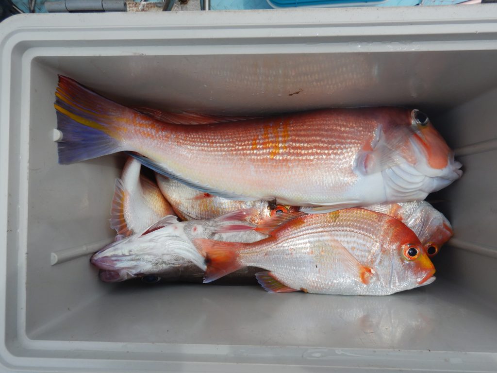 甘鯛(40㎝~48㎝)7尾 花鯛・甘鯛(25㎝~30㎝)25枚 カサゴ5尾 アラ(30㎝~35cm)5尾